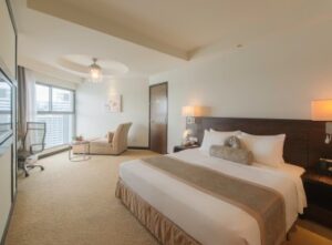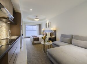 Phòng có diện tích từ 80m2, cung cấp 1 giường ngủ lớn (180cm x 200cm), tất cả các phòng đều không hút thuốc, đặc biệt có phòng được thiết kế dưới dạng phòng thông nhau là sự lựa chọn lý tưởng cho gia đình của bạn